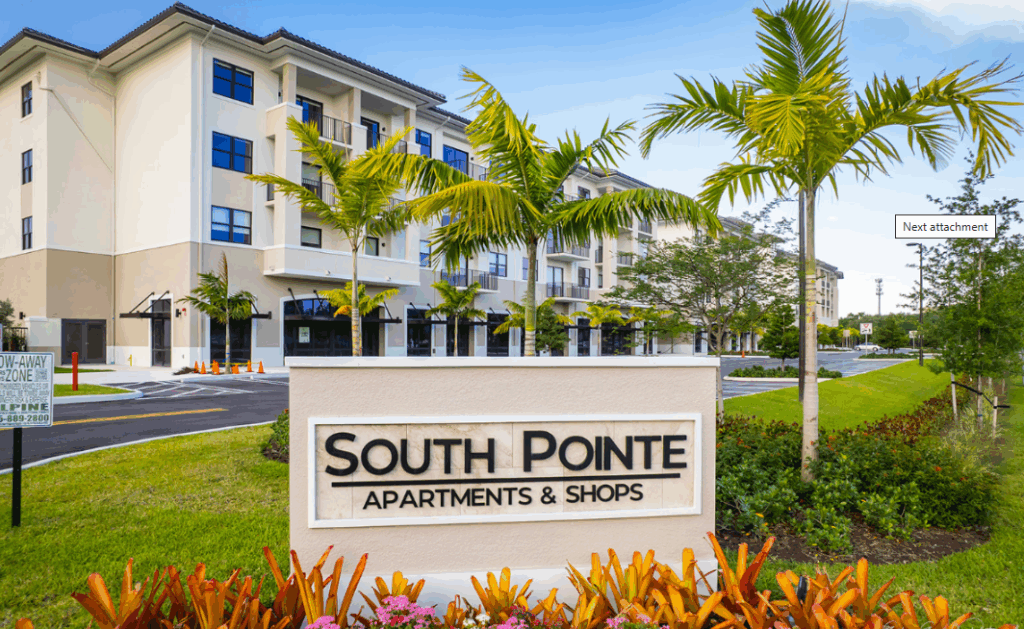 South Pointe spans 7.84 acres along Commerce Way, just north of NW 82nd Avenue. The community features 179 apartment units and 17,063 square feet of ground-floor retail space across three four-story buildings set alongside a tranquil lake.