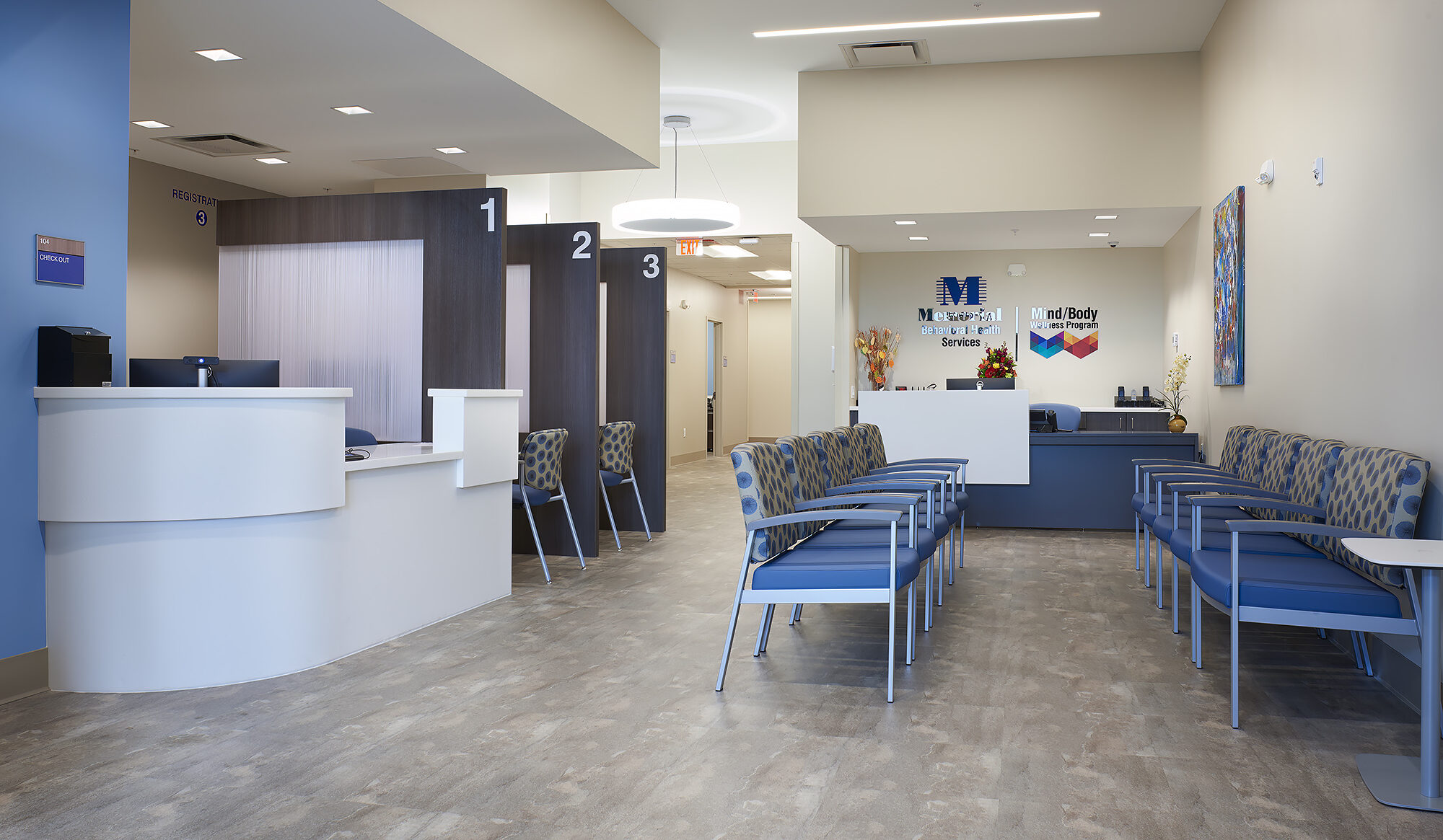 Memorial Healthcare System relocated and expanded its Memorial Outpatient Behavioral Health Center to provide inpatient and outpatient adult behavioral health and substance abuse services focused on helping patients achieve comprehensive health and wellness. The center, now relocated to Davie, features patient rooms, offices, intake rooms, nurses' station. a break room, classroom-style group rooms, and a waiting room to support Memorial's many behavioral health programs. The Mind/Body Wellness Program for instance, is a primary care clinic within the Outpatient Behavioral Health Center that integrates primary care and behavioral healthcare to meet the complete needs of patients.