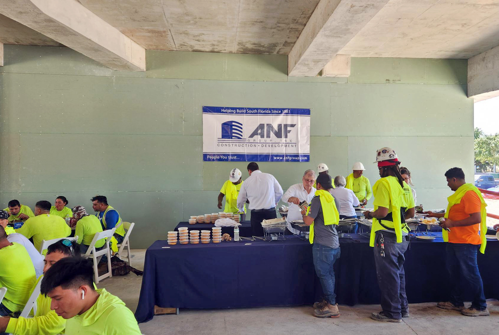 MIAMI LAKES, FL – At South Pointe in Miami Lakes, 250 construction workers enjoyed a buffet lunch to celebrate the progress made at the residential and retail project that is being built on Commerce Way.